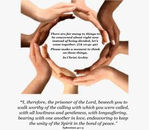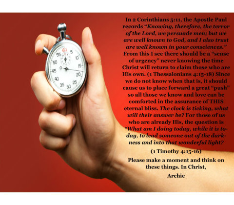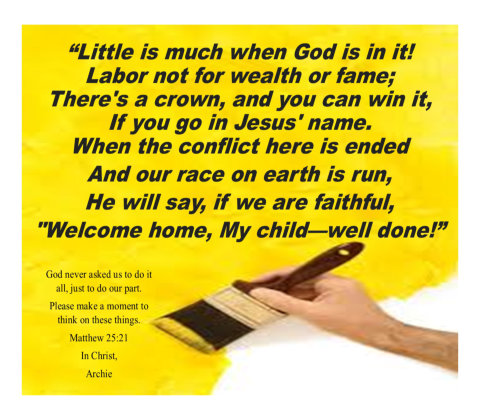 The statement was once made stating, "Ask not what your country can do for you - ask what you can do for your country," In reference to duty and country it is very applicable and called many, at that time, into honor and service for America. What if we applied the same mindset to our Lord? Most people come into Christ seeking what can be done for them...solo. There is nothing wrong with desiring salvation through Christ and His blood (Ephesians 1:7) but the reality is a GREAT relationship is NEVER one-sided. The real question is what can I do for Christ once saved and have become his bondservant? (Romans 6:17) I believe there is a duty and a joy to serve the Lord and His people with gladness as He demonstrated. (John 13:12-15) Maybe we can make the statement true, "Here am I. Send me!" (Isaiah 6:8) Please make a moment to think on these things. Archie